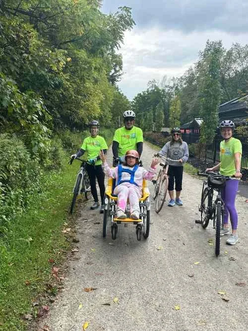 Adaptive Biking is for individuals of all abilities. A trained volunteer powers our adaptive bikes, allowing participants to ride along with a front-row seat to enjoy the thrill of experiencing nature on the trail. The 7-mile bike ride ends with ice cream. Family members are encouraged to ride along, with at least one caregiver required. Complimentary bikes and e-bikes are available for family members who ride along..