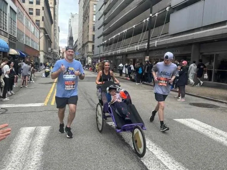 Adaptive Jogging gives our participants the opportunity to become an athlete and feel the speed and excitement of running through the use of adaptive running strollers. It is about making jogging accessible and inclusive for everyone. We participate in the Pittsburgh Marathon Relay as various teams representing our organization. Our end goal is to participate in races and train with high school and college track teams.